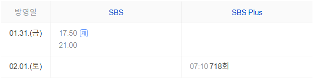 (※ 위 편성표는 변경될 수 있으니 SBS 편성표를 꼭 확인하세요.)