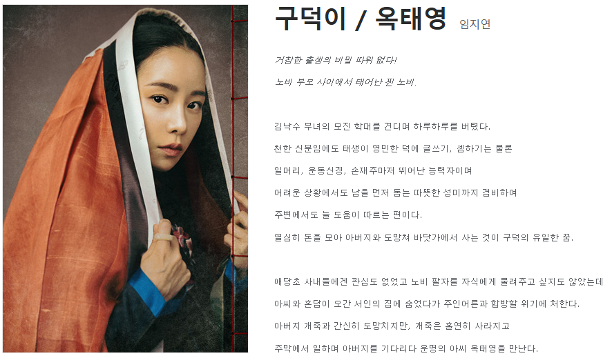 - 장르: 사극, 로맨스, 신분 상승 이야기