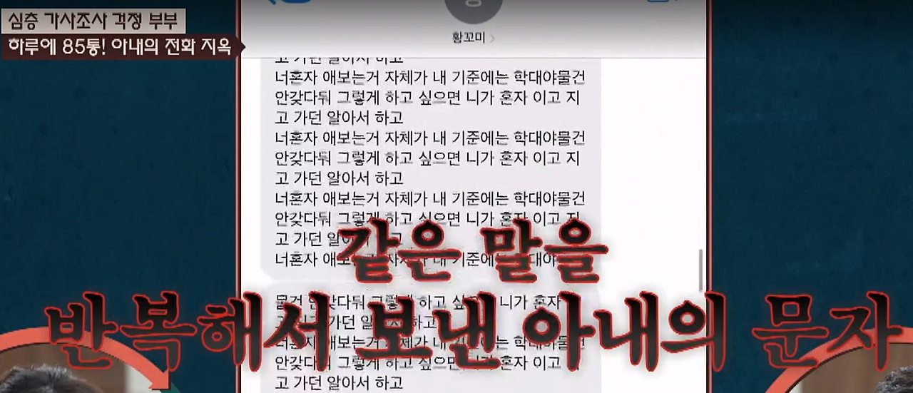 - 남편이 돈을 버는 방식, 가족을 대하는 태도까지 모두 문제 삼으며 감정적으로 몰아붙임.